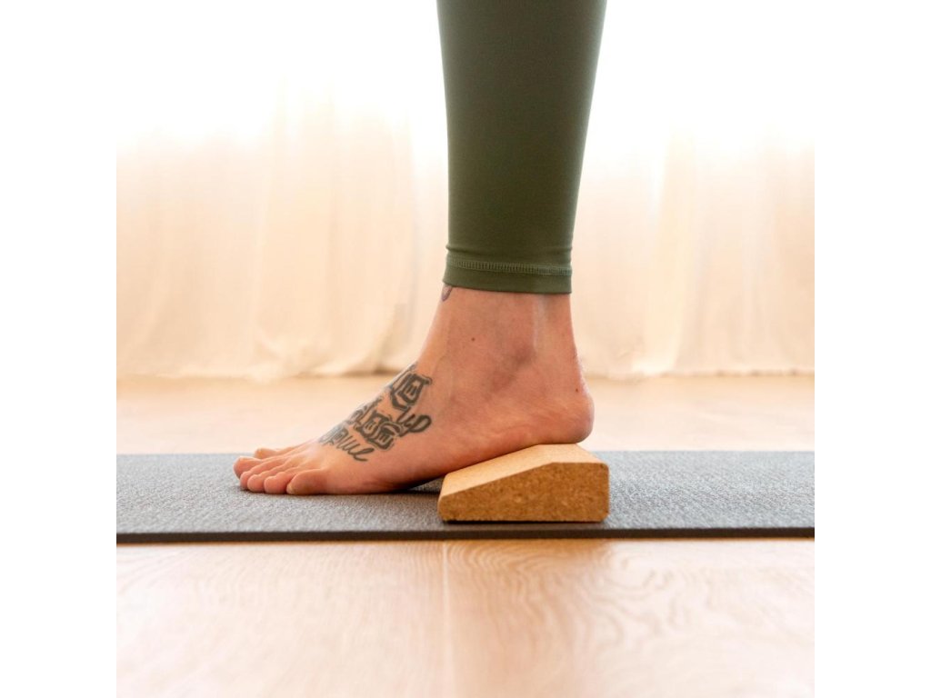 Môžeš si napríklad položiť ruky na klin pri stojke (Adho Mukha Vrksasana), aby si sa zbavil zbytočného tlaku na zápästie a predišiel bolestiam. Korkový klin je tiež praktickou pomôckou, ak ti päty nedosahujú na zem v niektorých stojacích pozíciách, napríklad v pozícii psa hlavou dole (Adho Mukha Svanasana).